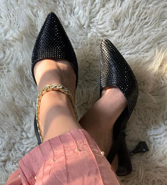 Step into timeless sophistication with our Sparkling Black Heel – the ultimate blend of glamour and class. Coated in a sleek black shimmer, this heel adds the perfect touch of sparkle to elevate your style for any occasion.